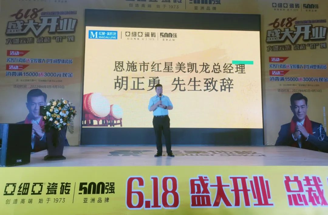 活動(dòng)現場(chǎng),恩施紅星美凱龍總經(jīng)理胡正勇在致辭中表示:“亞細亞瓷磚作為亞洲品牌500強,一直深受消費者和眾多地標建筑的青睞。很高興能有這樣優(yōu)質(zhì)的品牌入駐,和紅星強強聯(lián)手一起共筑美好生活!”