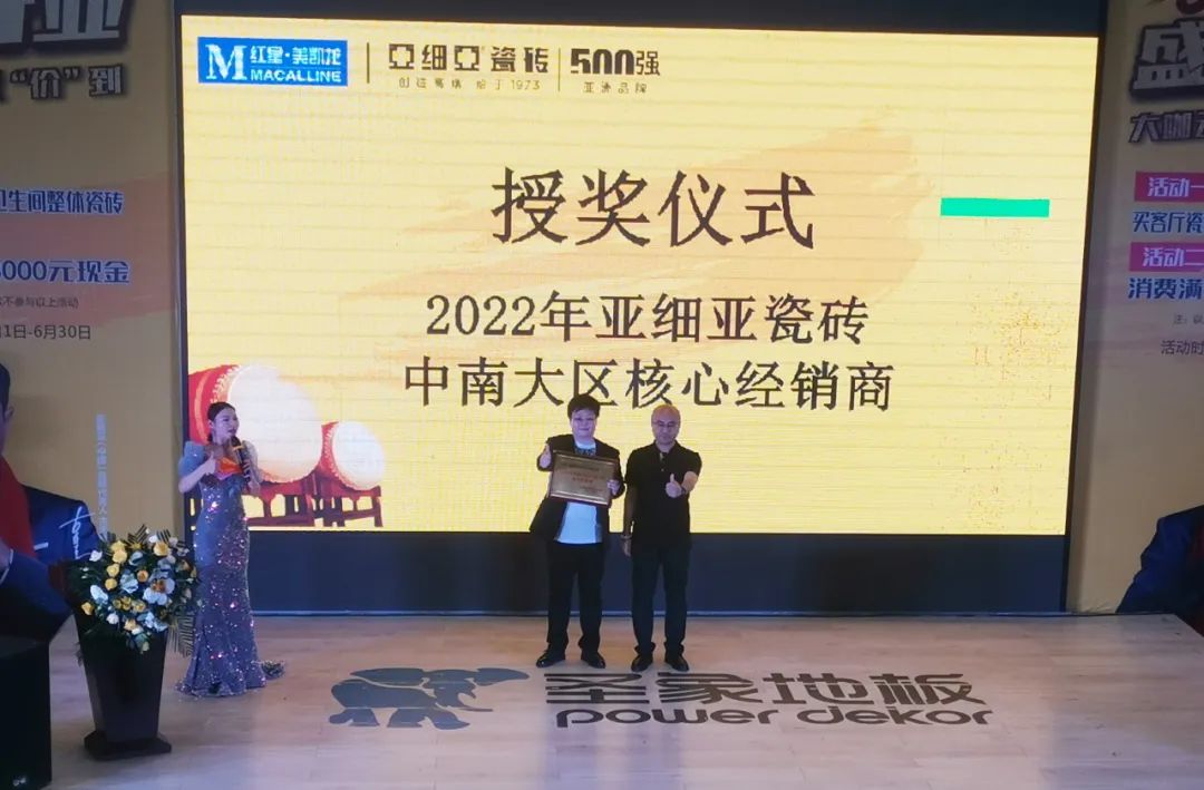 開(kāi)業(yè)典禮上,亞細亞瓷磚恩施旗艦店經(jīng)銷(xiāo)商趙燕被特別授予了“中南大區核心經(jīng)銷(xiāo)商”的殊榮,以表彰她在門(mén)店籌備期間的辛勤付出。她憑著(zhù)飽滿(mǎn)的工作熱情和踏實(shí)的積累,在短短半年內深耕渠道開(kāi)拓,目前已與眾多頭部裝飾企業(yè)達成戰略合作。